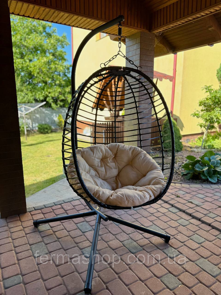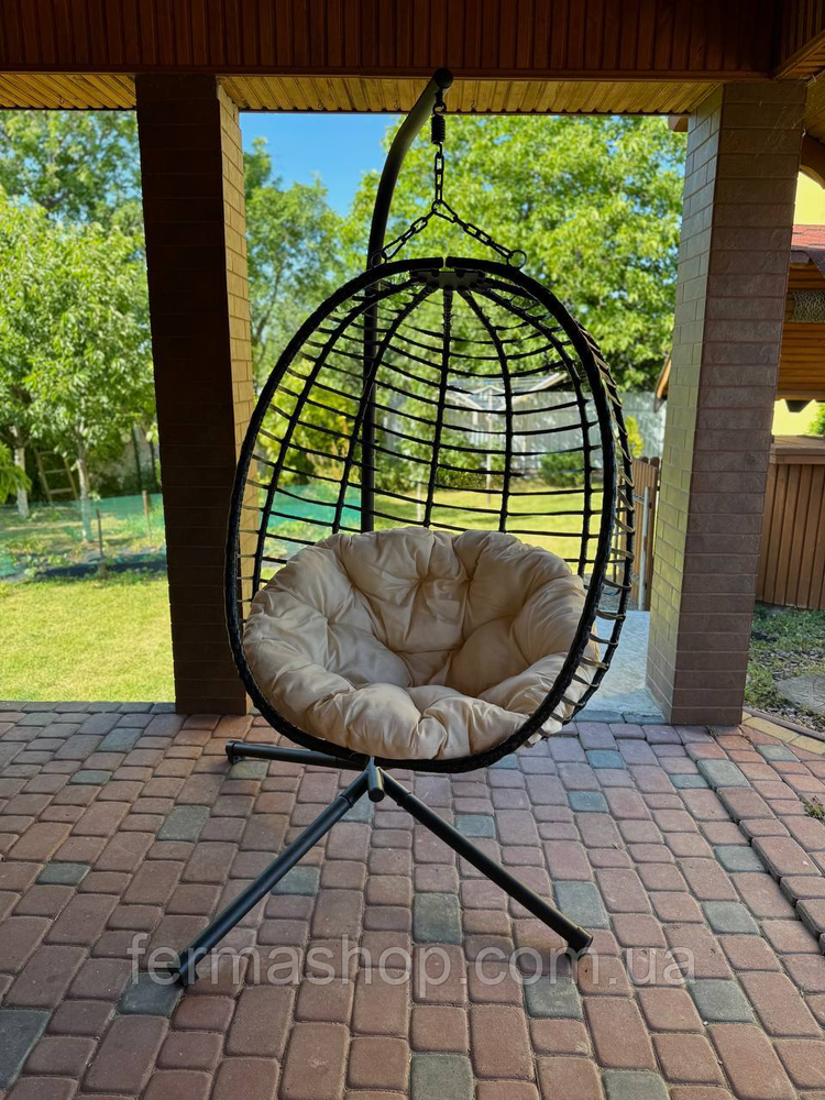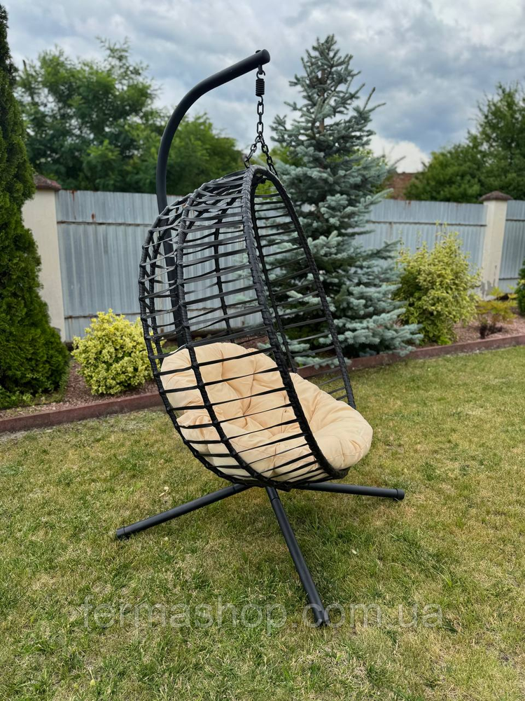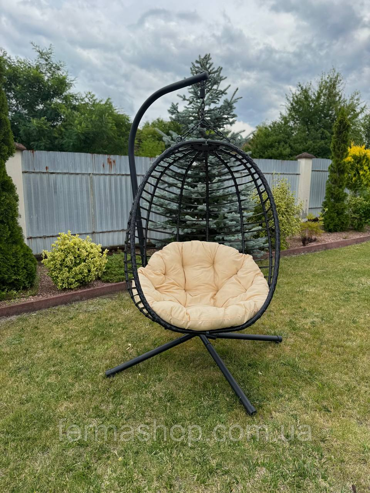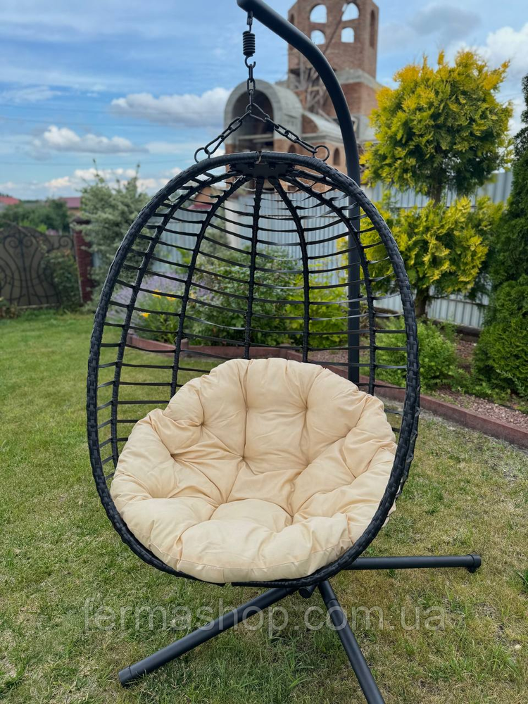 Подвесное садовое кресло качалка (кокон / гнездо) SAN VITO с мягкой бежевой подушкой, Черный