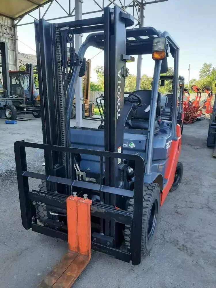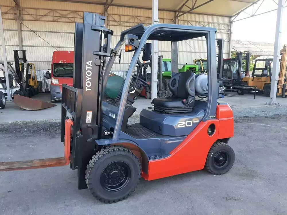 Вилковий навантажувач Toyota 8 покоління 02-8FG20 з вантажопідйомністю до 2 т, 20012р.в. тип палива газ/бензин, японського виробництва. Мачта 2-х секційна , має плиту зміщення вил, пічку, шина передня і задня - гусматична, пробіг 7126 мот/год, піднімає вантажі на висоту до 3м, мотор toyota 4y. Ціна з ПДВ. Можлива заміна мачти на трьохсекційну з висотою підіймання вантажів до 4,5м.