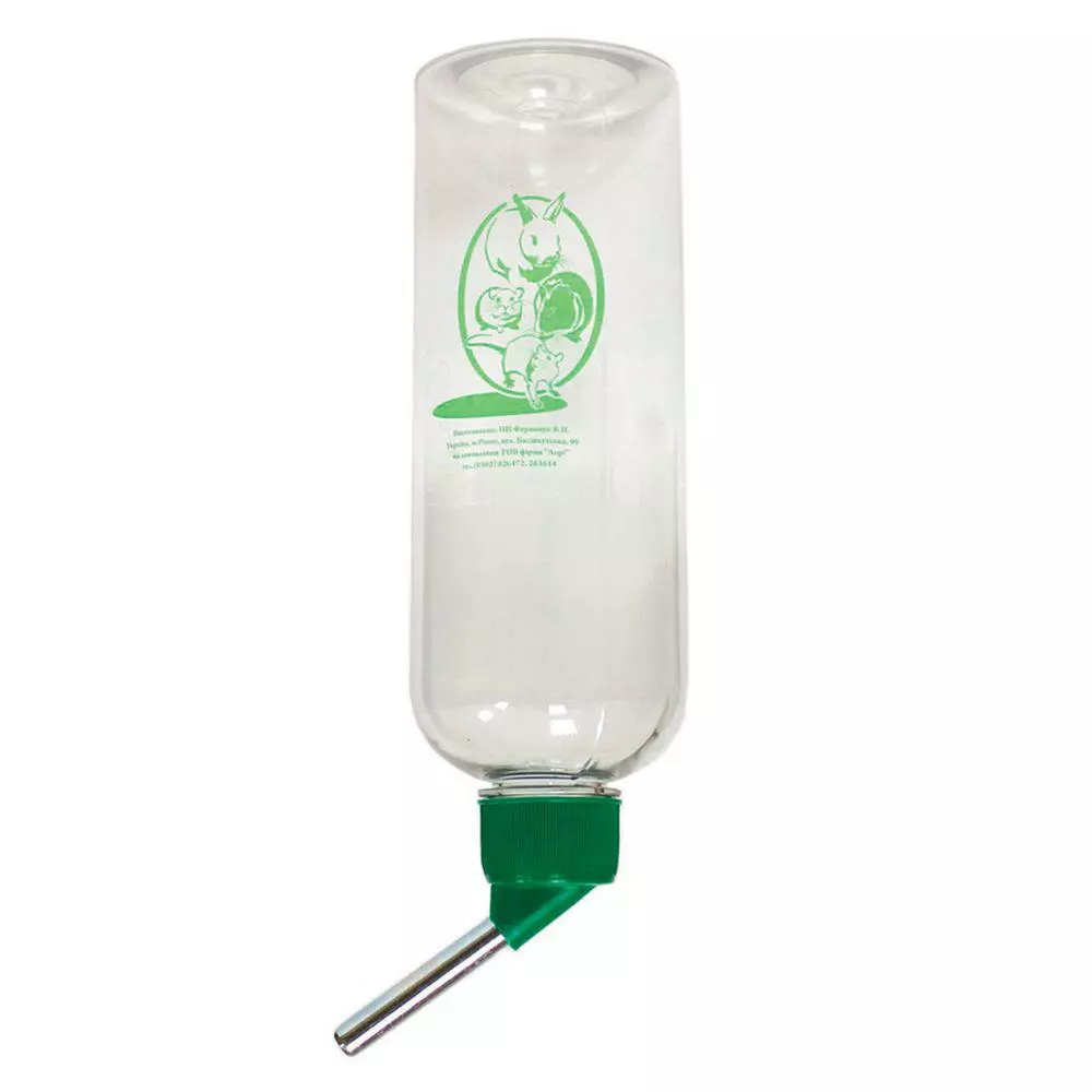 Пластикова поїлка для дрібних і середніх гризунів об'ємом 500 мл з металевим носиком, всередині якого дві кульки, забезпечує дозовану і безперебійну подачу води при механічному контакті.