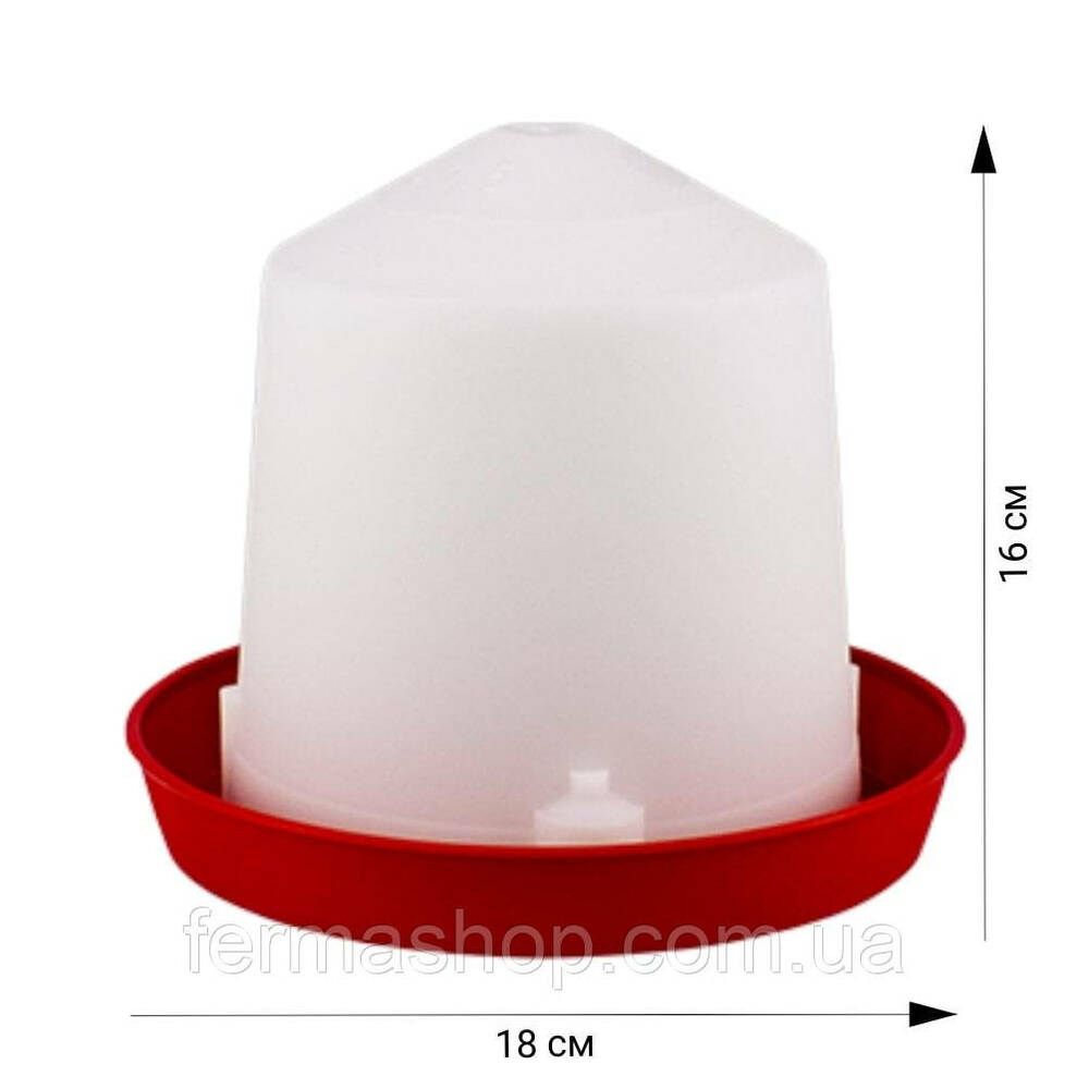 Вакуумная поилка 1,5 литра в пластике идеально подходит для поения птицы малого и среднего размера . Также подходит для цыплят с первых дней жизни.