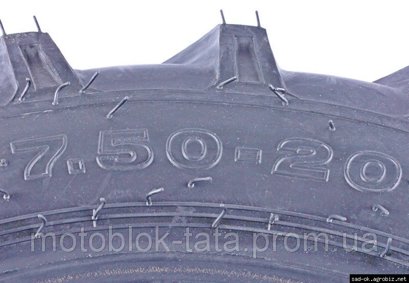 Покрышка с камерой 7.50*20 "елочка". Данная покрышка предназначена на минитракторы. Размеры: ?...mm, B-...mm. Рисунок протектора - "елочка". Вес: ... кг.