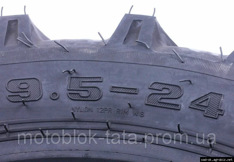 Покрышка с камерой 9.50*24 "елочка". Данная покрышка предназначена на минитракторы. Размеры: ?...mm, B-...mm. Рисунок протектора - "елочка". Вес: ... кг.
