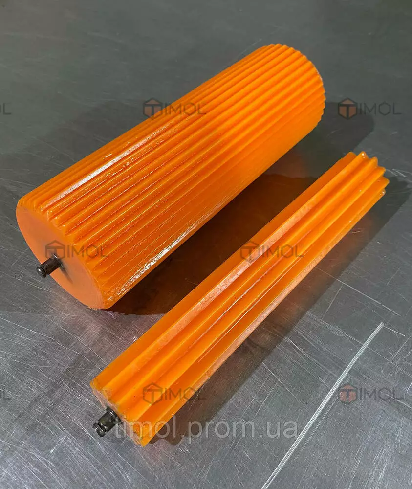 Здійснюємо заміну гумових деталей на поліуретанові, відновлення робочого шару та покриття (гумування, футеровка) вузлів і деталей промислового обладнання. Серед можливих об’єктів обробки – вали, колеса, ролики, технологічні трубопроводи та інші елементи техніки.