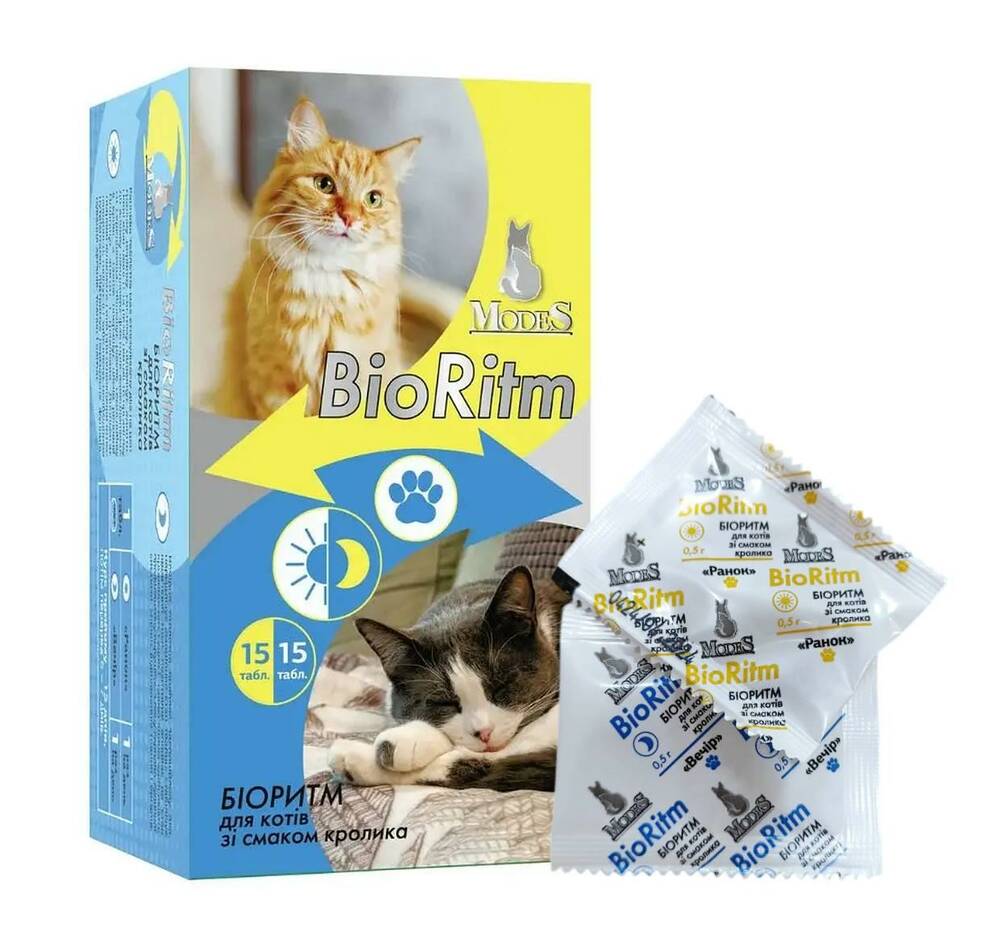 Полівітамінний комплекс Біоритм (BioRitm) для котів зі смаком кролика ціна за 2 таблетки (Ранок - 1 шт., Вечір - 1 шт.)