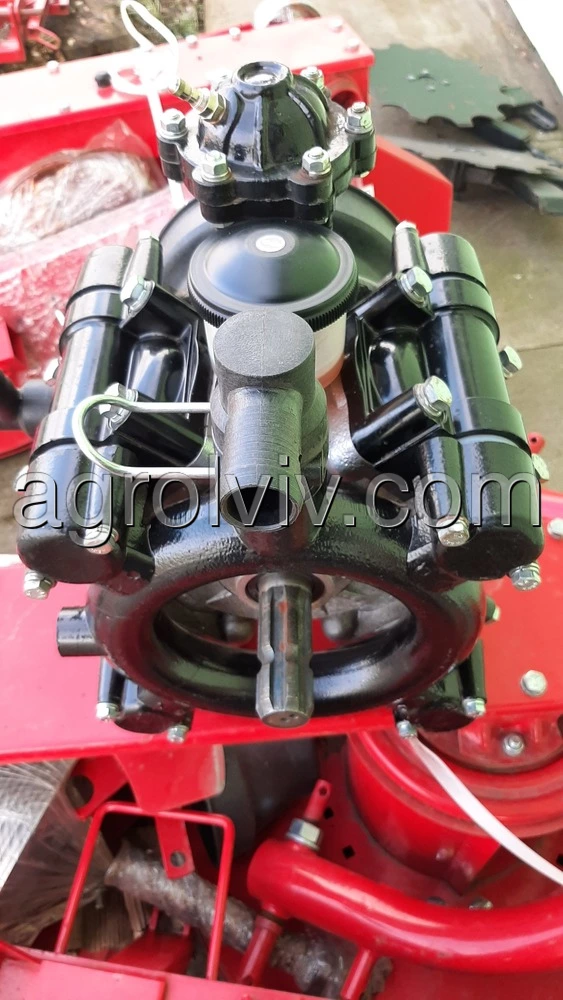 роботу насосу. Насос виконаний зі сплавів алюмінію, з полімерних матеріалів та якісних гатунків сталі. Максимальний робочий тиск 1,5 МПА. Швидкість обертання валу насоса 540 об/хв. Говорячи простою мовою насоси для оприскувачів в залежності від виробника поділяються на два види: металопластикові та алюмінієві. Наш насос є металопластиковий та на 80% виготовлений з полімерних матеріалів високої якості, включаючи навіть поршень який знаходиться в середині насосоа. Решта 20% складає алюміній та сталь.