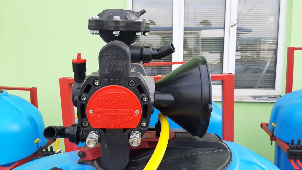 Діафрагмово-поршневий насос TOLVERI PU2/120 призначений для створення тиску та перекачування рідких хімічних засобів в навісних обприскувачах з максимальним розмахом крил 16 метрів. В насосах використовуються спеціальні поліуретанові діафрагми, а внутрішній механізм занурений у масляну ванну. Висока якість матеріалів та відмінне виконання забезпечують довговічність та ефективність насоса. Всі матеріали, які контактують із рідиною, мають високу стійкість до корозії (головки виконані з полімерного матеріалу). Використання повітряного затвору в насосах стандартної комплектації забезпечує надзвичайно рівномірну