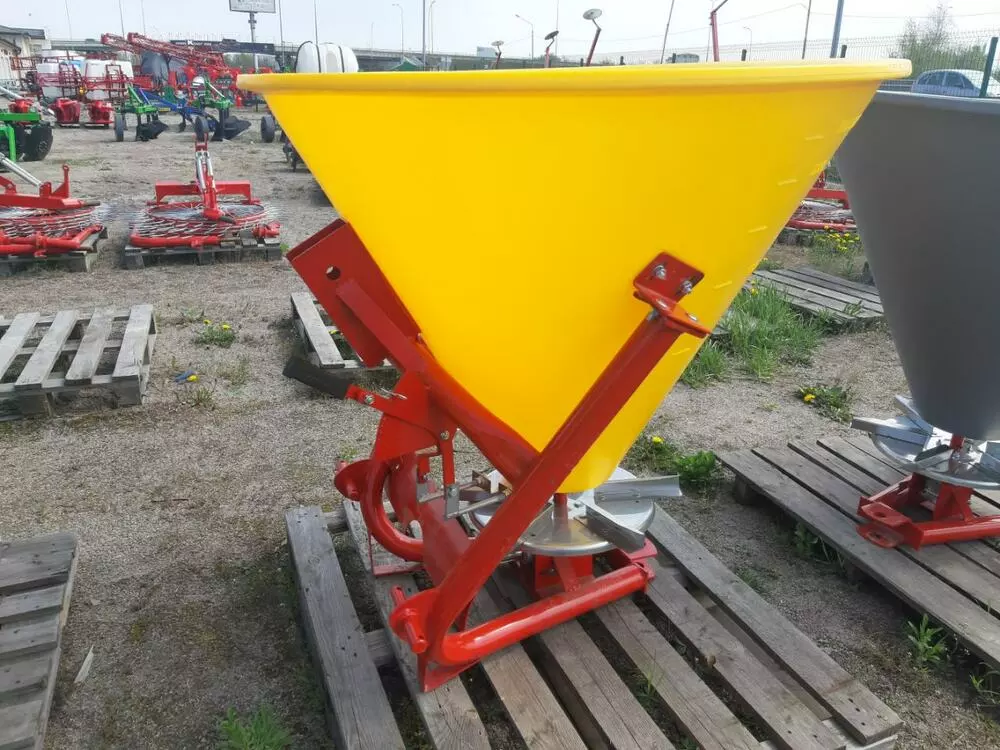 Розкидач мінеральних добрив (Польща) тракторний навісний застосовується для поверхневого внесення мінеральних добрив в гранульованому вигляді, а також для посіву зернових культур і підживлення в період вегетації, що впливає на врожайність. Завантаження машини проводиться у польових умовах. Доза внесення добрив залежить від регулювання механізму керування дозуючими заслінками і робочої швидкості руху