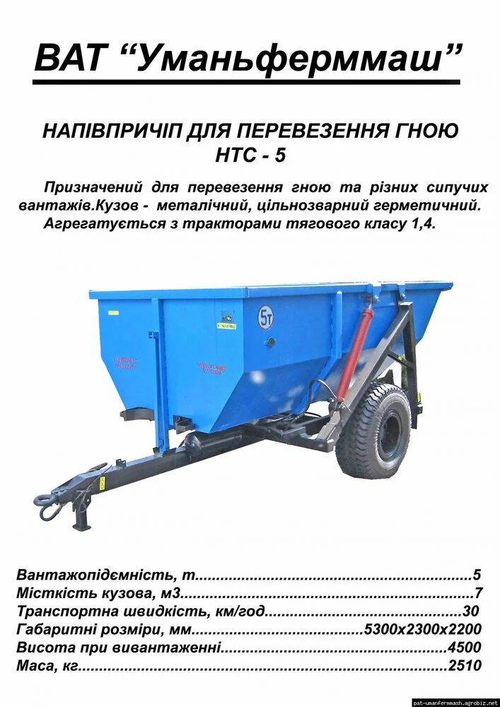 Полуприцеп тракторный самосвальный НТС-5 предназначен для