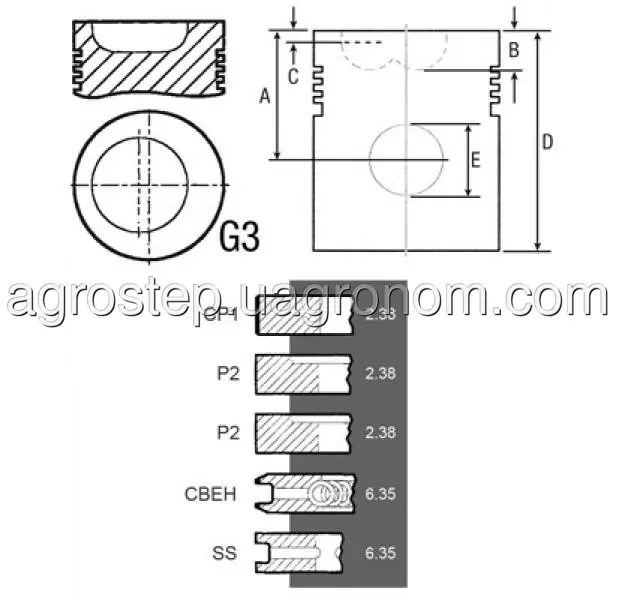 Поршень / кільця 3640442M91, 32-12 двигуна Perkins