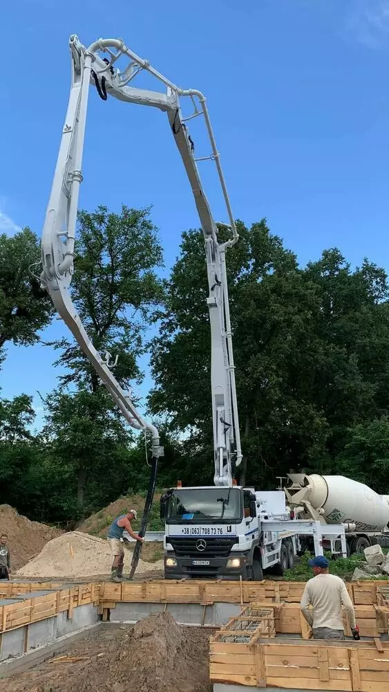 Надаємо послуги автобетононасосів зі стрілою до 52 м, а також стаціонарного бетононасосу до 150 м. Також здійснюємо доставку бетону за залізобетонних виробів по Києву та області.