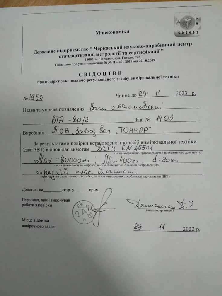 5. Оформление метрологических документов с клеймом Поверителя (+3000грн)