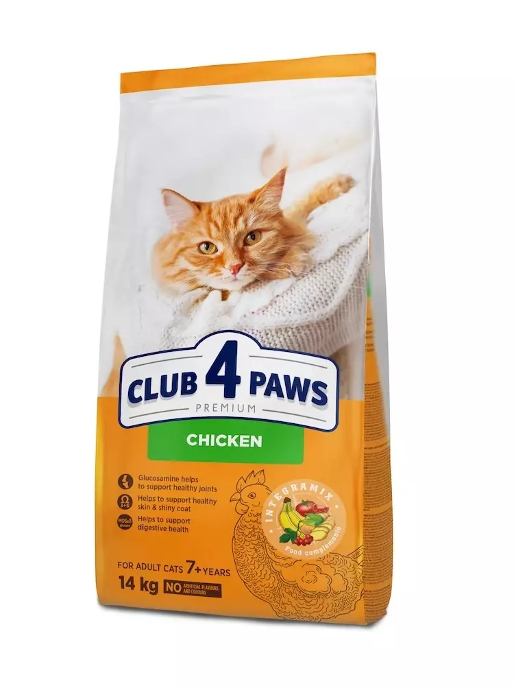 Повнораціонний сухий корм CLUB 4 PAWS (Клуб 4 Лапи) Преміум з куркою для кішок від 7 років, 14 кг