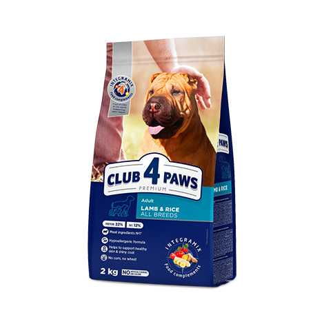 Повнораціонний сухий корм CLUB 4 PAWS (Клуб 4 Лапи) Преміум з ягням і рисом для дорослих собак всіх порід, 2 кг