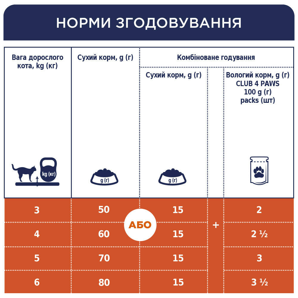 Корм потрібно вводити в раціон поступово (принаймні впродовж перших 5 днів). Забезпечити тварині постійний доступ до чистої та свіжої питної води. Індивідуальні норми годування тварини можуть варіюватися, залежно від віку, породи, рівня активності та довкілля. Більш детальні пропорції див. на фото 3 та на упаковці.