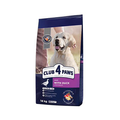 Повнораціонний сухий корм для дорослих собак CLUB 4 PAWS (Клуб 4 Лапи) Преміум для великих порід з качкою, 14 кг