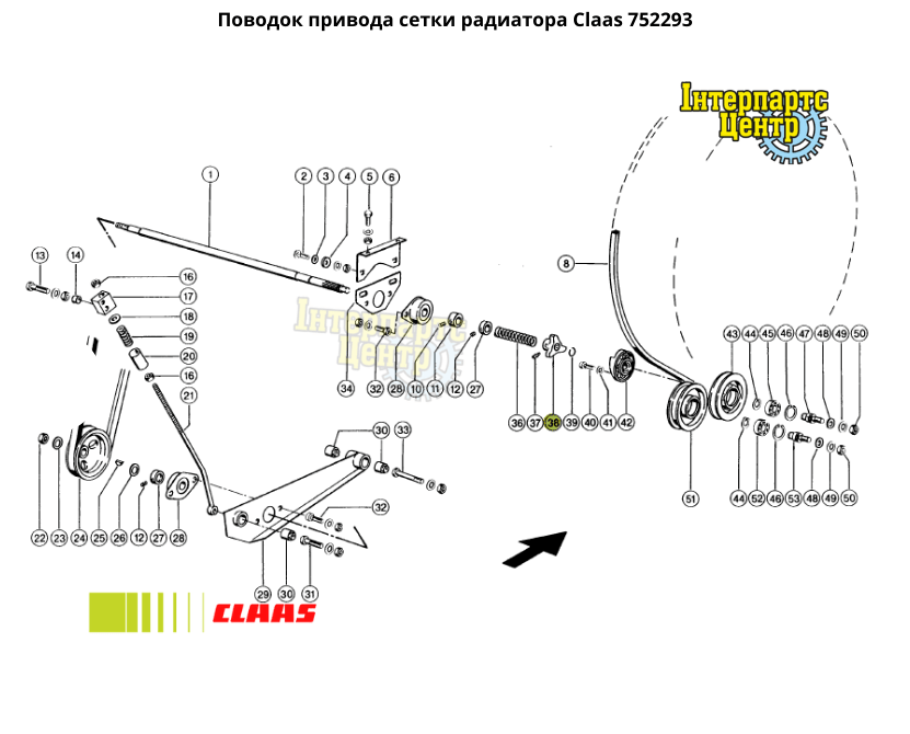 Повідець приводу сітки радіатора Claas 752293, 752293.1, 7522931, 000752293, 0007522931, 174938, 1749380, 174938.0, 000174938, 0001749380