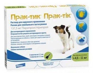 Прак-тік® для собак маленьких розмірів по 1,1 мл (137,5 мг пірипролу);