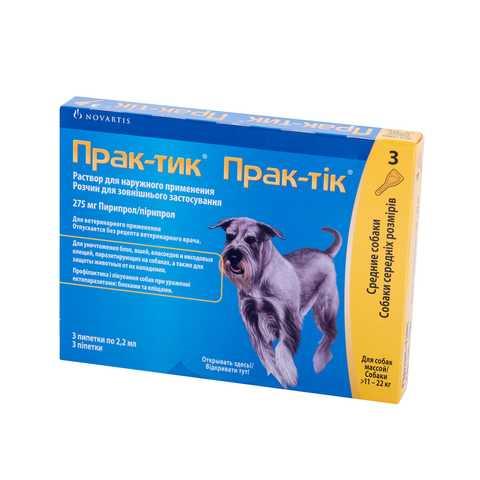 Прак-тік® для собак середніх розмірів по 2,2 мл (275 мг пірипролу);