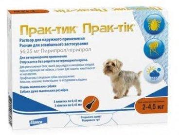 Прак-тік® для собак дуже маленьких розмірів по 0,45 мл (56,25 мг пірипролу);