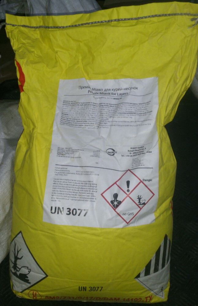 Состав: Витамины: А, Д3, К3, В1, В2, В6, В12, Никотиновая кислота В3, Холин хлорид В4, Пантотеновая кислота В5, Фоливая кислота В9, Биотин Н2. Микроэлементы: Железо, Селен, Йод, Медь, Марганец, Цинк, Кобальт, Макроэлементы: Кальций