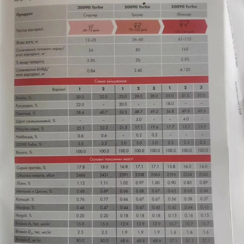 Период откорма: Стартер 12-25 кг / Гровер 26-60 кг / финишер 61-110 кг