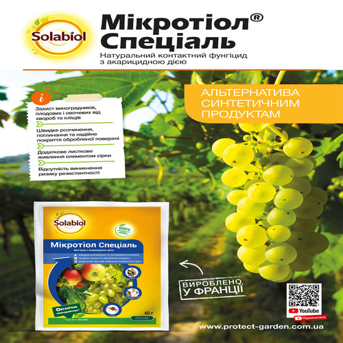 Препарат «Мікротеоль Специаль» 40 г був розроблений для використання в сучасних системах обприскувачів. Представляє собою неорганічний контактний фунгіцид (FRAC код М2). Діюча речовина препарату — сірководень, який виділяється при взаємодії сірки з вологою.