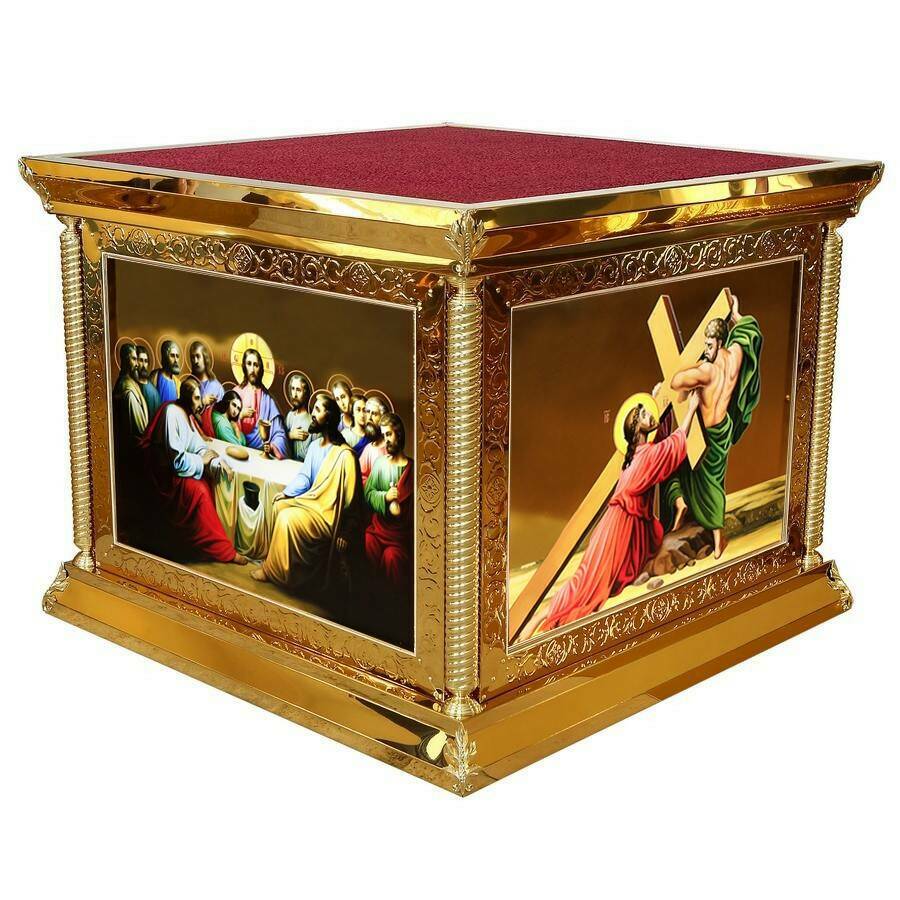 Широкий вибір церковних престолів представлений в інтернет-магазині виробника «Фавор». У нашому каталозі ви знайдете престоли необхідних габаритів, відтінків, з литими прикрасами, карбуванням, оракалом, літографією, іконами. Вироби можуть бути виготовлені з дерева, булату або вилито з латуні.