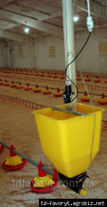 последующей подачи корма по трубам в кормушки.