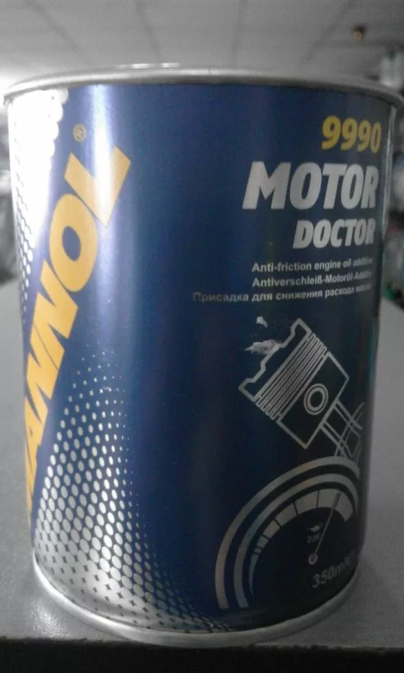 MANNOL Motor Doctor 9990 - спеціальна присадка для зниження витрати масла. Служить для підвищення компресії і тиску масла, а також для зниження його витрати в старих і зношених двигунах. Властивості MANNOL Motor Doctor 9990: Запобігає потраплянню масла в камеру згоряння, утворення кіптяви і димлення двигуна. Знижує знос нових двигунів, продовжує термін їх служби. Утворює на поверхнях деталей, що труться надійну мастильну плівку, що забезпечує безвідмовну роботу двигуна в тяжких умовах. MOTOR DOCTOR змішуємо з усіма синтетичними і мінеральними маслами. Застосування: Додається в нове моторне масло при кожній заміні (при робочій температурі двигуна). Вмісту однієї ємності досить для масляних систем з об'ємом до 6 літрів.