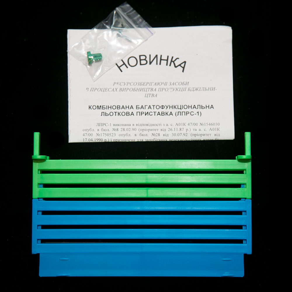 Комбінована багатофункціональна льоткова приставка призначена для збереження та нарощування біологічного потенціалу бджолосімей та захисту їх медопродуктів на протязі виробничого циклу.