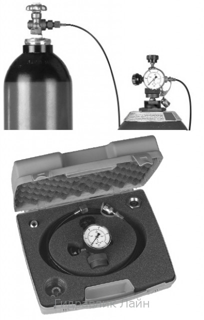 Використовується для періодичної перевірки та попередньої заправки акумулятора та для накачування. Влаштування попередньої зарядки та перевірки гідроакумуляторів. Використовується для періодичної перевірки та попередньої заправки акумулятора та для накачування самих акумуляторів після заміни балона або застосовується при заміні клапана для зарядки балона. Для накачування необхідно підключення до балона, наповненого технічним сухим азотом з тиском вище, ніж необхідне значення попередньої заправки, що забезпечується за допомогою редукційного клапана (обов'язково, з метою безпеки, під час накачування акумуляторів при тиску PS