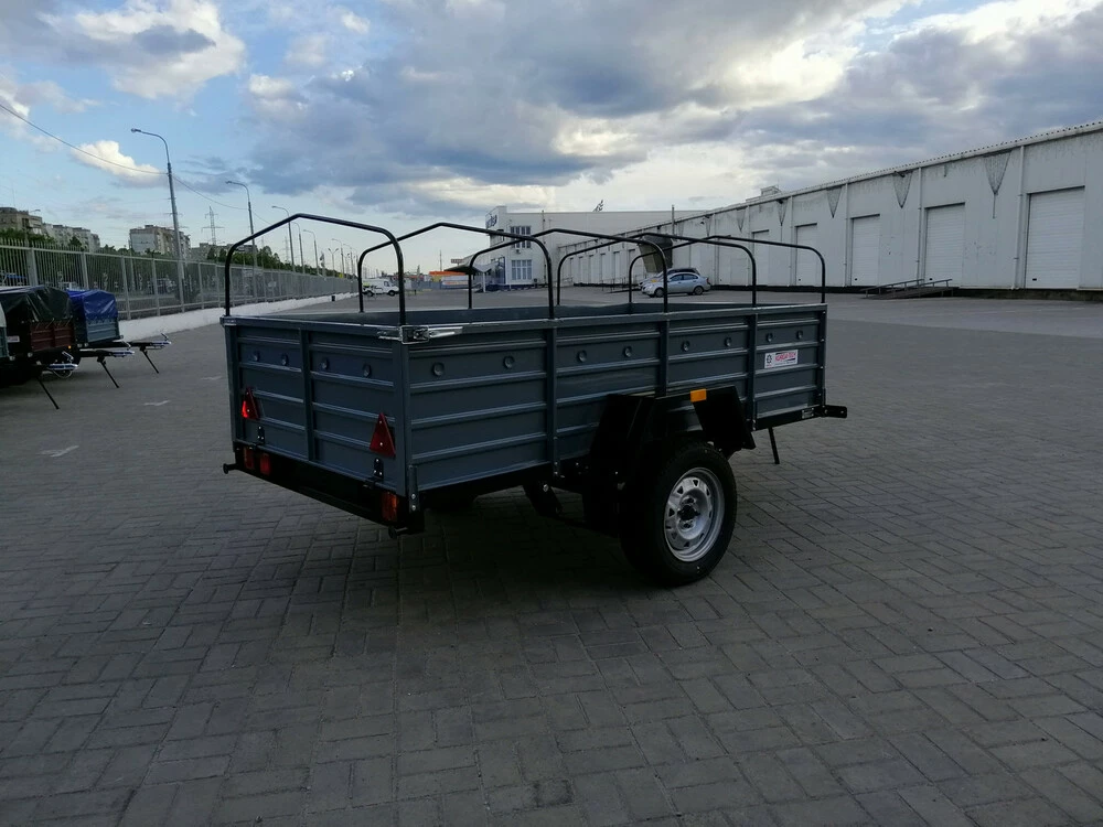 Установка дополнительных бортов до 3-х ярусов,рессора 7 листов, рессора волга 6 листов, установка универсальной ступицы, колеса R 14, усиление борта квадратной трубой, усиленный сцепной замок 1300 кг. Усиление борта квадратной трубой.