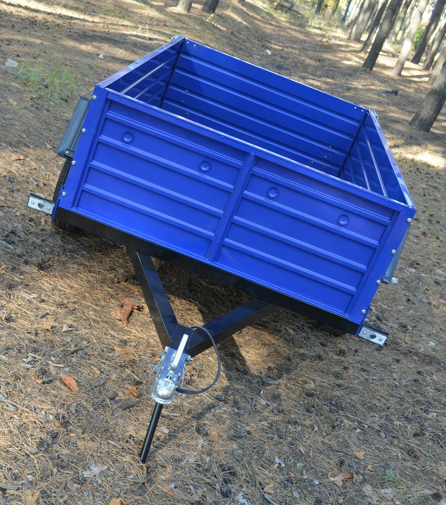 Установка дополнительных бортов до 3-х ярусов, рессора 7 листов, рессора волга 6 листов, установка универсальной ступицы, колеса R 14, усиление борта квадратной трубой, усиленный сцепной замок 1300 кг.