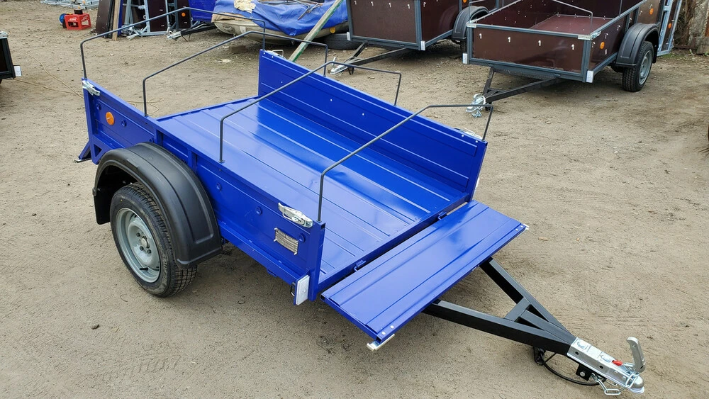 Прицеп "Палыч" (Хамер): одноосный, рессора 5-листовая (усиленная), амортизатор ВАЗ 2101, дышло треугольное, задний и передний борт открывается, рама усиленная цельносварная. Полная масса 750 кг. Толщина металла на бортах и днище 1мм. Ступица: ВАЗ-2108 с двухрядным необслуживаемым подшипником. Прицеп оснащен всей необходимой светотехникой.