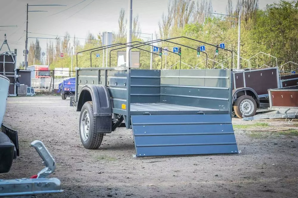 Прицеп "Палыч" (Хамер): одноосный, рессора 5-листовая (усиленная), амортизатор ВАЗ 2101, дышло треугольное, задний и передний борт открывается, рама усиленная цельносварная. Полная масса 750 кг. Толщина металла на бортах и днище 1мм. Ступица: ВАЗ-2108 с двухрядным необслуживаемым подшипником. Прицеп оснащен всей необходимой светотехникой.