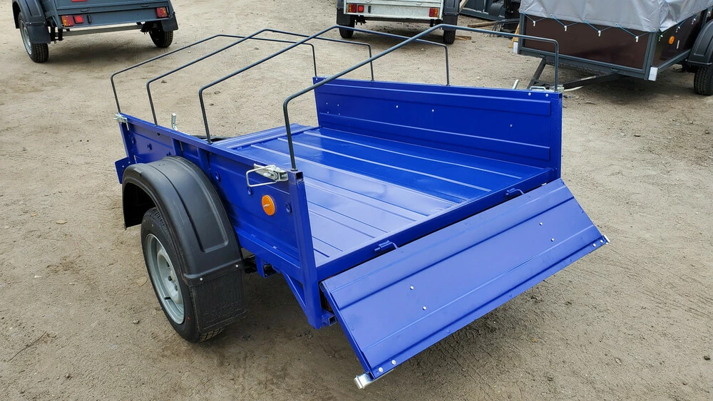 Прицеп "Палыч" (Хамер): одноосный, рессора 5-листовая (усиленная), амортизатор ВАЗ 2101, дышло треугольное, задний и передний борт открывается, рама усиленная цельносварная. Полная масса 750 кг. Толщина металла на бортах и днище 1мм. Ступица: ВАЗ-2108 с двухрядным необслуживаемым подшипником. Прицеп оснащен всей необходимой светотехникой.