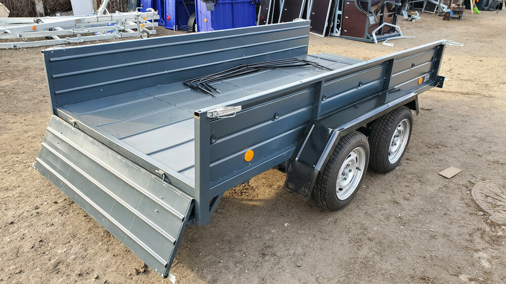 Прицеп "Палыч" (Хамер): двухосный, рессора 5-листовая (усиленная), амортизатор ВАЗ 2101, дышло треугольное, задний и передний борт открывается, рама усиленная цельносварная. Полная масса 750 кг. Толщина металла на бортах и днище 1мм. Ступица: ВАЗ-2108 с двухрядным необслуживаемым подшипником. Прицеп оснащен всей необходимой светотехникой.