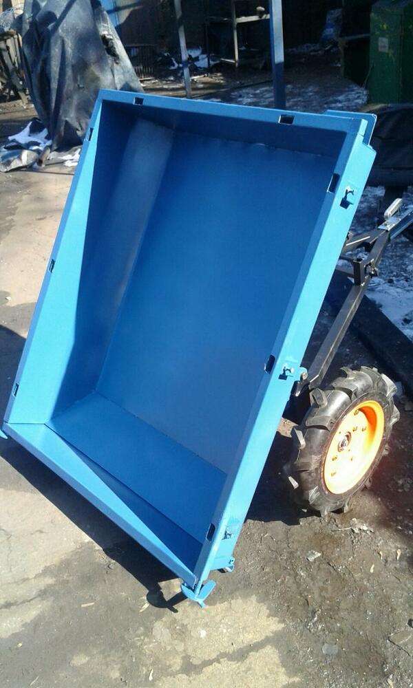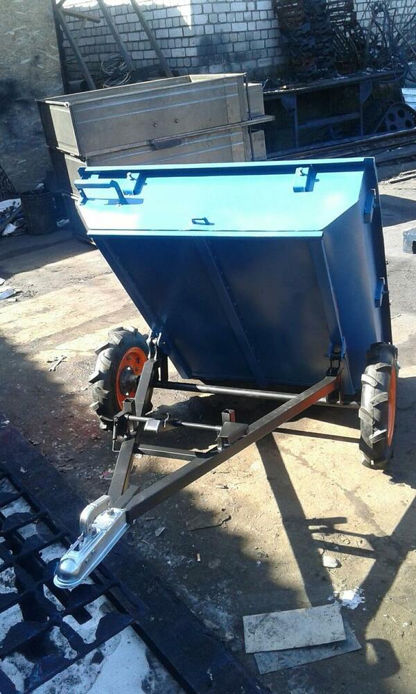 Прицеп-самосвал имеет размеры 1050 х 1200 мм, и оснащен тормозами под жигулевскую ступицу. Откидной кузов позволяет быстро и удобно разгружать прицеп.
