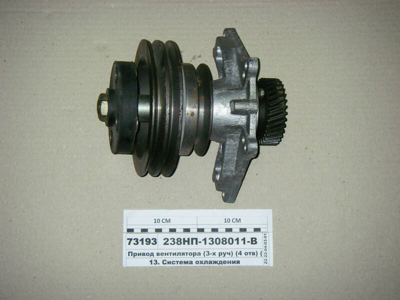 Привод вентилятора з триступеневим шківом оригінально розроблений для двигунів ЯМЗ-238Н, забезпечує оптимальну роботу системи охолодження двигуна. Ця частина відповідає за передачу руху від коленвала до вентилятора, що грає важливу роль у підтримці належної температури роботи двигуна.