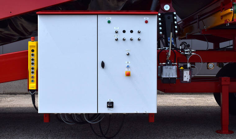 .Розвантажувальне дно складається з коробчастих профілів довжиною 2400 мм, покритих поліефірно-нейлоновою тканиною. Трубчасті профілі закріплені з обох боків на міцному ланцюгу підлоги діаметром 4 дюйми.
