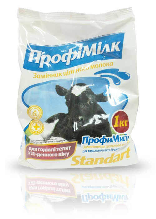 Замінник цільного молока ПрофіМілк «LactoStandart»виготовлено з молочних компонентів з додаванням рослинних білків та жирів, збагачено збалансованим комплексом біологічно-активних речовин (вітаміни, макро-, мікроелементи), пребіотичним комплексом, смаковими та ароматичними речовинами, що підвищують апетит у тварин. Не містить консервантів, стабілізаторів, антибіотиків та ГМО.