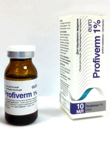 Опис Однорідний, прозорий розчин від світло-жовтого до жовтого кольору. Склад 1 мл препарату містить діючу речовину: івермектин 10 мг; допоміжні речовини: n-бутанол, пропіленгліколь (до 1 мл). Фармакологічні властивості Івермектин - авермектиновий антигельмінтний препарат. Речовина посилює вивільнення гама-аміномасляної кислоти (ГАМК) в пресинаптичних нейронах. ГАМК - універсальний тормозний медіатор, який блокує постсинаптичну стимуляцію сусідніх нейронів у нематод. Шляхом стимуляції вивільнення ГАМК івермектин викликає параліч і загибель паразитів. Після підшкірного введення препарат має найвищу здатність до абсорбції. Метаболізується івермектин в печінці шляхом окислювальних процесів, виділяється, головним чином, з фекаліями. Менше 5% препарату виводиться з сечею. Застосування Профілактика і лікування захворювань великої рогатої худоби, овець, кіз, свиней, собак, викликаних: у великої рогатої худоби: шлунково-кишковими нематодами - Ostertagia ostertagi, O. lyrata, Trichostrongylus axei, Trichostrongylus columbriformis, Haemonchus placei (включаючи личинки третьої стадії), Nematodirus spp. (статевозрілі форми); легеневими нематодами - Dictyocaulus viviparus (дорослі і личинки четвертої стадії); коростяними кліщами - Sarcoptes bovis, Psoroptes bovis; оводами (у фазі личинок) - Hypoderma lineatum, H. bovis; вошами - Linognathus vituli, Haematopinus eurysternus, Solenopoles capillatus; волосоїдами - Bovicola bovis; у овець та кіз: шлунково-кишковими нематодами - Haemonchus contortus, (статевозрілі та личинки третьої і четвертої стадії), Trichostrongylus vitrinus (статевозрілі форми), T. columbriformis (статевозрілі та личинки четвертої стадії), Nematodirus filicollis (статевозрілі та личинки четвертої стадії), Oesophagostomum colombianum, O. venulosum (статевозрілі), Charbetia ovina (статевозрілі), Trichuris ovis (статевозрілі); легеневими нематодами - Dictyocaulus filaria (дорослі і личинки четвертої стадії), Protostronlylus spp. (статевозрілі); коростяними кліщами - Sarcoptes scabiei, Psoroptes communis (var. Ovis); носоглотковим оводом - Oestrus ovis (всі личинкові стадії); у свиней: шлунково-кишковими нематодами - Ascaris suum, Hyostrongylus rubidus (статевозрілі та личинки четвертої стадії), Oesophagostomum spp., Strongyloides ransomi (статевозрілі); легеневими нематодами - Metastrongylus spp. (статевозрілі); вошами - Haematopinus suis; коростяними кліщами - Sarcoptes suis. у собак: нематодами - Dirofilaria immitis, D. repens, Toxascaris leonine, Toxocara canis, Uncinaria stenocephala, Ancylostoma caninum; кліщами - Sarcoptes canis, Demodex canis, Otodectes cynotis; вошами - Linognathus setosus. Дозування Препарат застосовують одноразово, лише підшкірно у дозах: великій рогатій худобі, вівцям та козам: 1 мл на 50 кг маси тіла (0,2 мг івермектину на 1 кг маси тіла), вводять у ділянку лопатки; свиням: 1 мл на 33 кг маси тіла (0,3 мг івермектину на 1 кг маси тіла), вводять у середню ділянку шиї; собакам: 0,1-0,2 мл на 5 кг маси тіла (0,2-0,4 мг івермектину на 1 кг маси тіла). Протипоказання Не вводити препарат внутрішньовенно або внутрішньом'язово. Не застосовувати коровам, козам та вівцематкам у період лактації, а також за 28 діб до родів. Не застосовувати собакам порід коллі, бобтейл та їх помісей, собакам дрібних порід та цуценятам віком до 3 місяців. Не вводити виснаженим та хворим на інфекційні захворювання тваринам. Дотримуватись точного дозування для поросят. Застереження Забій тварин на м'ясо дозволяється через 28 діб після останнього застосування препарату. Отримане до зазначеного терміну м'ясо утилізують або згодовують непродуктивним тваринам, залежно від висновку лікаря ветеринарної медицини. Форма випуску Флакони з коричневого скла, закрит