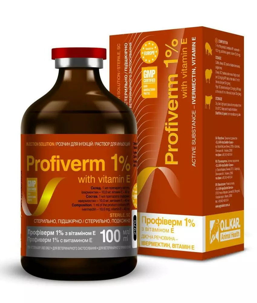 Профиверм 1% з вітаміном Е флакон 100 мл O.L.KAR. (Івермектин 1%)