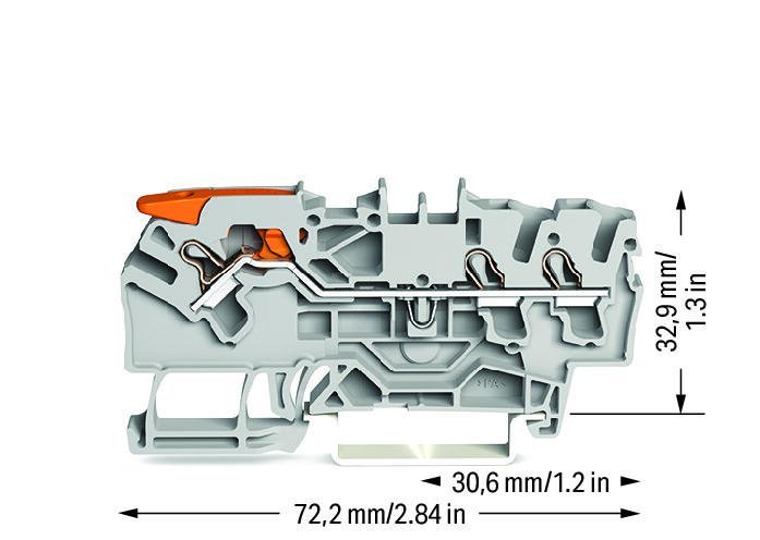 Прохідні клеми Wago 3-дротяні TOPJOB з важелем і Push - in CAGE CLAMP; 2,5 мм², з тестовим портом; бічна і центральна маркіровка; для DIN- рейки 35 x 15 і 35 x 7,5; Push - in CAGE CLAMP®; 2,50 mm²; сірі.