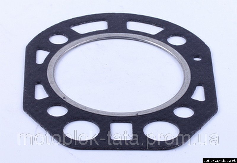 Прокладка головки цилиндра ?75mm - 175N подходит на дизельные двигатели мотоблоков и мототракторов мощностью 7 л.с. с водяным охлаждением. Материал: паранит с металлической армировкой. Размеры: внутренний ?52mm, толщина H-...mm. Вес : гр.
