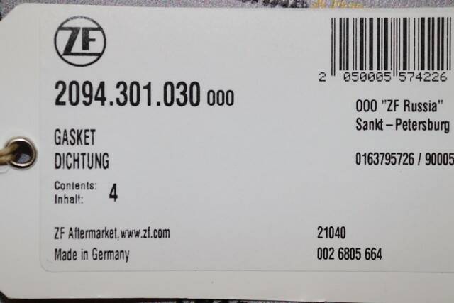 Оригінальні запчастини ZF для мостів і коробок передач спецтехніки
