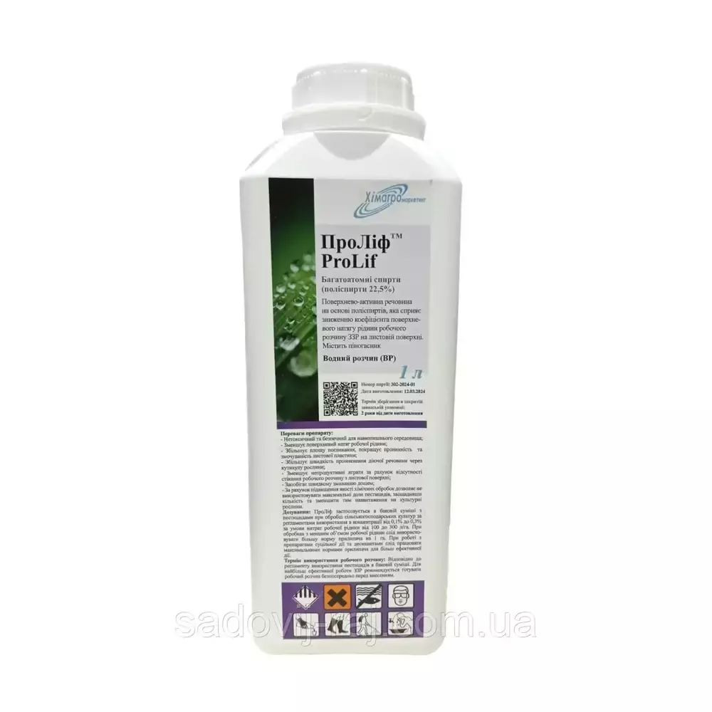 ПАР ПроЛіф – це поверхнево-активна речовина на основі поліспиртів, яка сприяє зниженню коефіцієнта поверхневого натягу рідини робочого розчину ЗЗР на листовій поверхні. Та сприяє більш швидкому проникненню діючих речовин через кутикулу листової тканини. При цьому не руйнуючи природний захисний восковий наліт рослини, тим самим усуваючи можливість виникнення захворювань на культурній рослині.