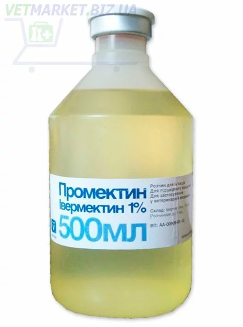 Промектин (PROMECTINE)  - розчин для ін'єкцій (100 мл) - протипаразитний препарат, що містить як діючу речовину івермектин, що отримується шляхом ферментації гриба Streptomyces avermitilis. Являє собою прозорий стерильний розчин світло-жовтого кольору, в 1 мл якого міститься 10 мг івермектину та допоміжні компоненти. Випускають розфасованим по 10, 20, 50, 100 та 250 мл у герметично закритих полімерних флаконах.