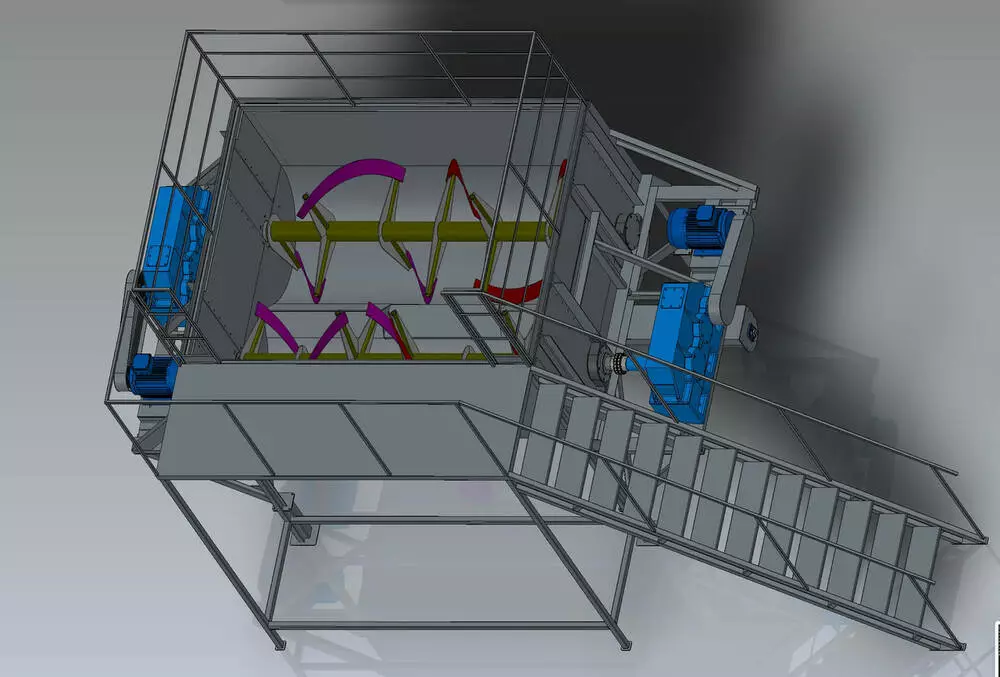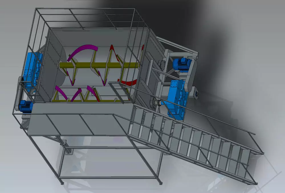 • Принцип роботи: Подвійні стрічки, що обертаються в протилежних напрямках, забезпечують рівномірне змішування.