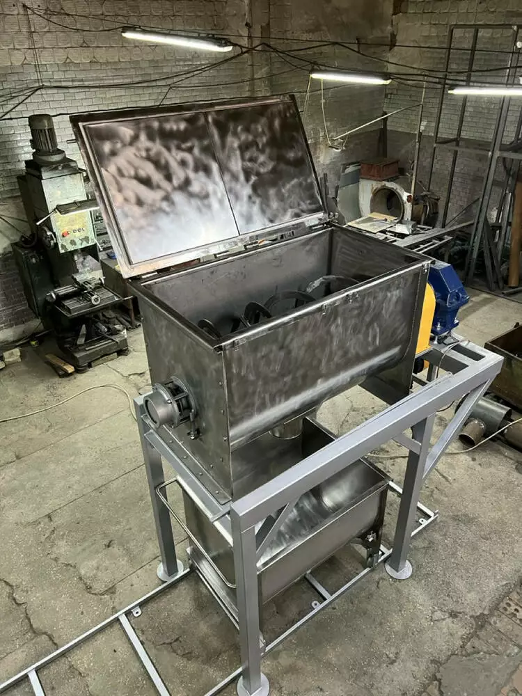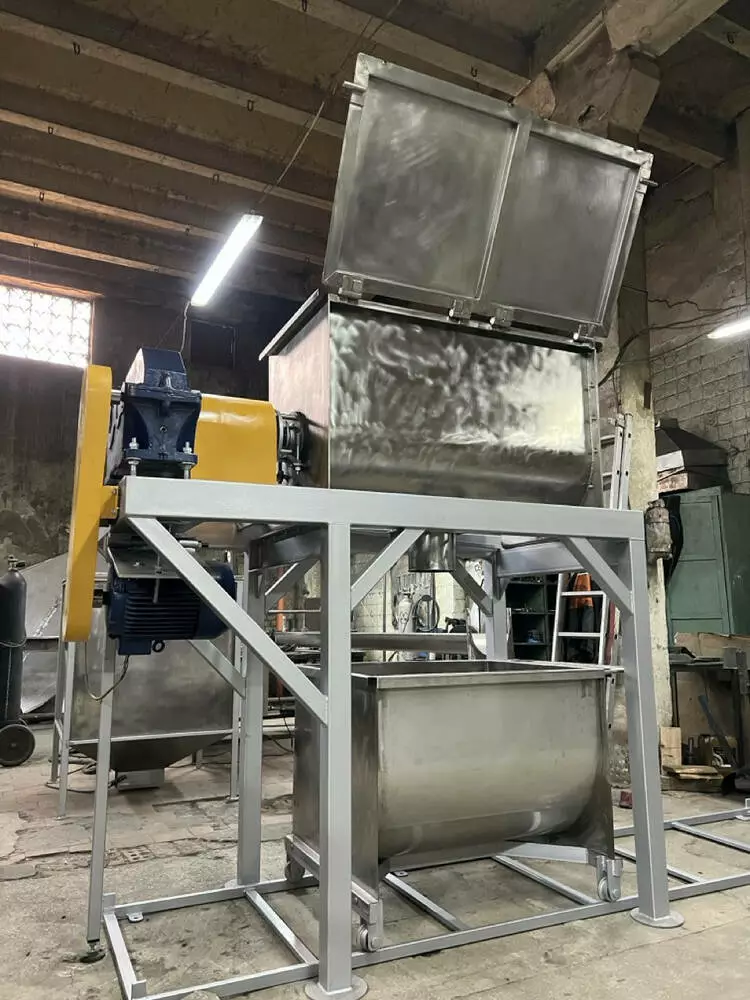 • Лопатевий змішувач: Обладнаний лопатями, які забезпечують ефективне перемішування, особливо підходить для продуктів з високою вологістю або в’язкістю.